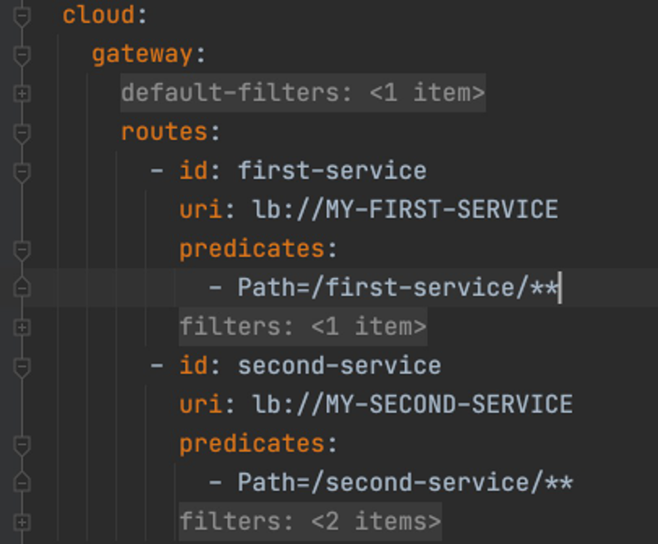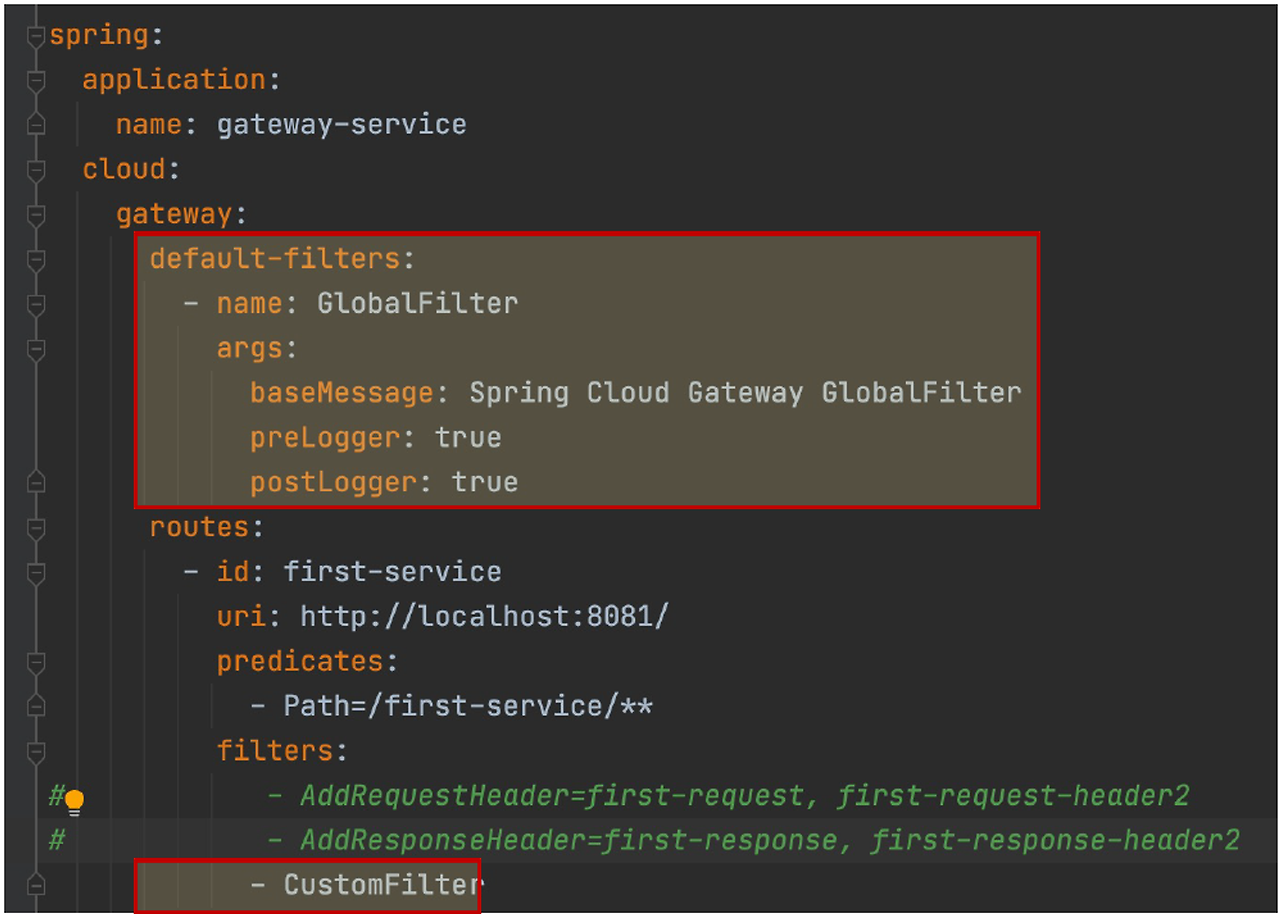 - routes 위에 default-filters 등록 후, 이름과 전달하고자 하는 파라미터 지정