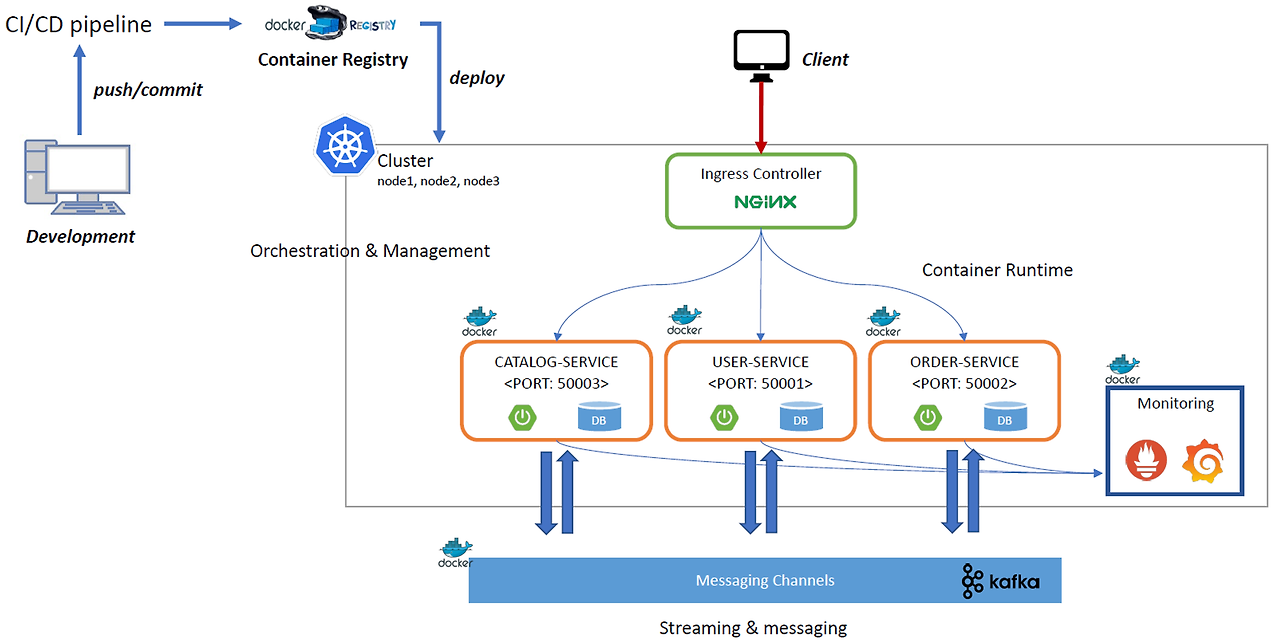- CATALOG-SERVICE와 ORDER-SERVICE를 연동하기 위해 Kafka(Message Queueing Server)를 별도의 외부의 Docker 컨테이너에 배포