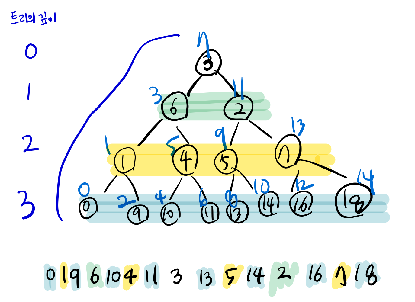 이때, 트리의 깊이는 재귀 호출된 깊이를 활용하여 쉽게 알 수 있다.