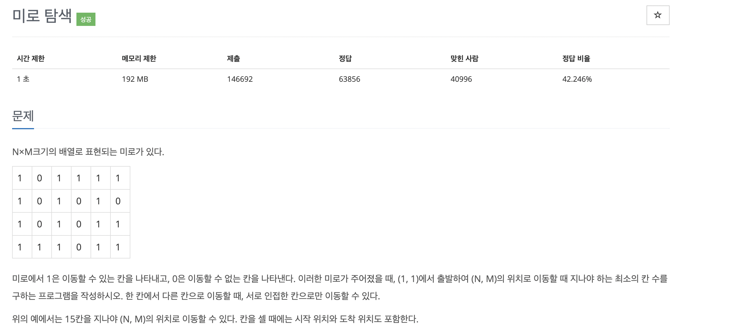 미로탐색 문제로, dfs나 bfs로 푸는 문제이다. 나는 bfs를 이용하여 문제를 해결하였다.