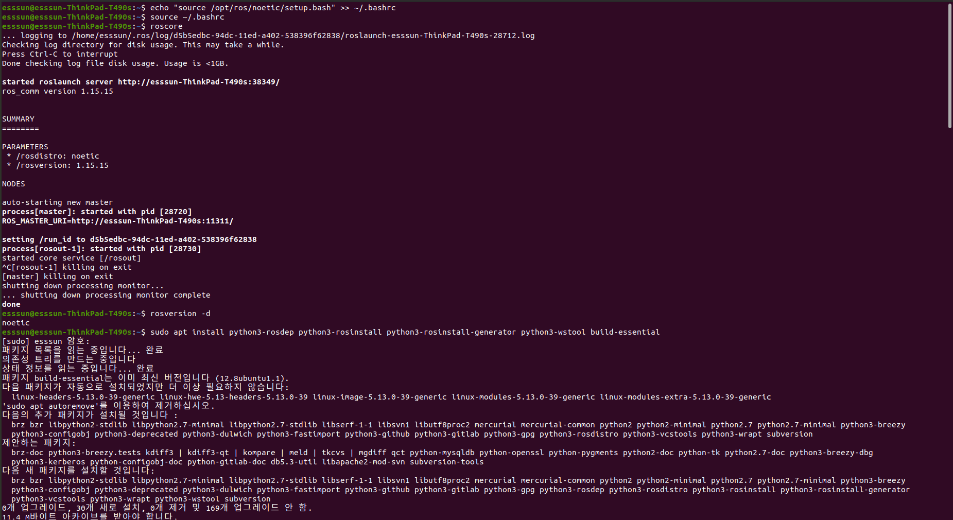 마지막으로, ROS가 제대로 설치되었는지 확인하기 위한 작업이다.