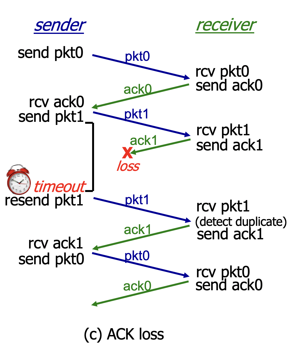 A) sender는 receiver에게 어떤 일이 발생했는지 모르므로 재전송할 수 밖에 없음 -> duplicate이 될수도 O