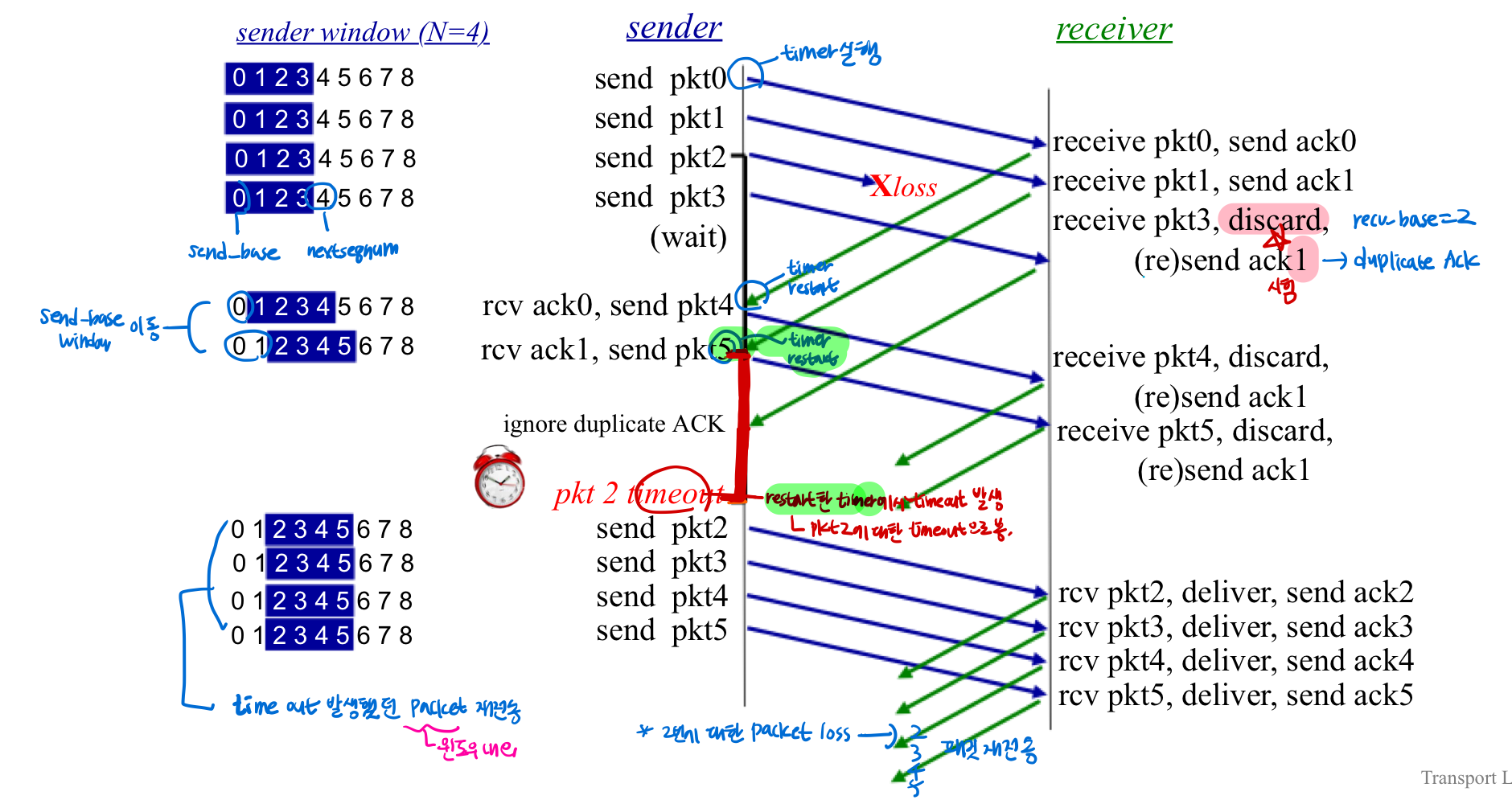 - 0번 패킷에 대한 time out 가장 먼저 발생 -> sender : 패킷 0번 재전송한 경우