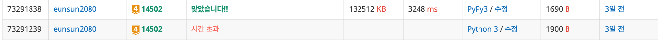 💡 풀이코드 1 (pypy 성공, python 시간초과)